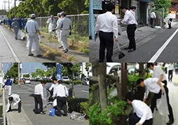 三和グループでは2007年より、毎年6月10日を『三和環境の日』として定め、様々な取り組みを実施することで、従業員へ環境方針の理解と環境情報の周知を行い、環境保全の意識向上に努めています。三和環境の日の取り組みの一環として、全国の事業所で、事業所周辺の清掃を行っています。毎年約1,500名が参加し、従業員の環境保全意識向上に加えて地域への社会貢献にもなっています。