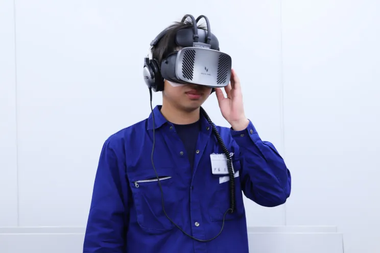 三和シヤッター工業では「安全VR研修」を実施し、施工現場で起こる可能性のある墜落災害、電気工具切創災害、可搬式作業台転落災害などを、被災者の視点から体感することで事故発生の抑制に注力しています。また、熱中症による労働災害を防止するため、熱中症アラートバンドや冷却機能付き空調服の使用等を推進しています。
