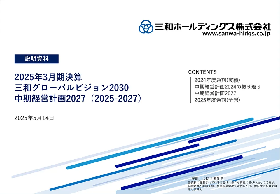 三和グループは、製品・サービスのスマート化推進とITと生産設備への投資を積極的に行うことで社会のニーズに応え、生産性の向上を図ってまいります。