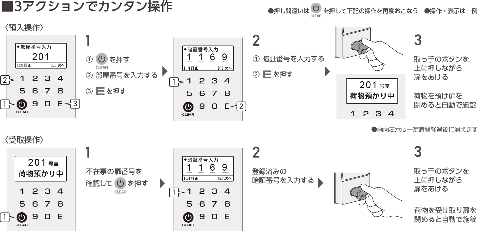 配達業者が設定した暗証番号で施解錠 扉施解錠方式:電池式 |