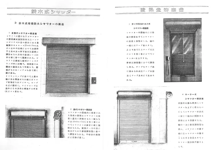 上記は、社団法人日本シヤッター工業会(現一般社団法人日本シヤッター・ドア協会)が昭和53年に刊行した『シャッター100年の歩み』から抜粋して紹介しています。
